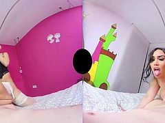 Delightful busty brunette tranny Bam enjoys deep fuck